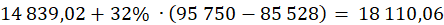 Oblicz 32% nadwyżki ponad 85 528 zł i dodaj 14 839,02, czyli
