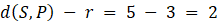 Odległość punktu P od okręgu wynosi 2.
