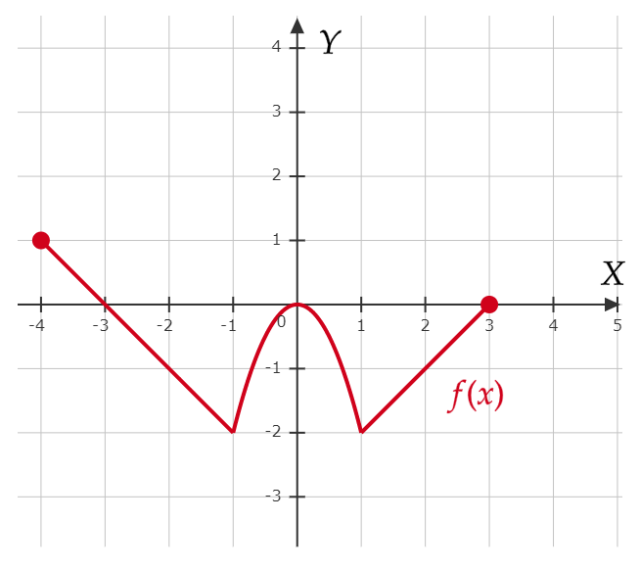 Podana funkcja jest określona za pomocą trzech wzorów, każdy w innym przedziale. Stwórz tabelki częściowe dla każdego przedziału, naszkicuj trzy wykresu w jednym układzie współrzędnych. Te trzy wykresy razem dają wykres funkcji