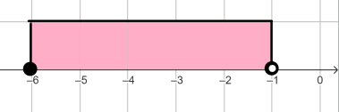Zaznacz na osi zbiór liczb równocześnie większych lub równych -6 i mniejszych od -1.