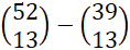 W talii składającej się z 52 kart znajduje się 13 kierów, dlatego obliczasz, na ile sposobów możesz wybrać 13 kierów z 52 kart i odejmujesz przypadki, dla których nie będzie żadnych kierów – czyli wybierasz 13 kart z pozostałych 39 kart (bez kierów):