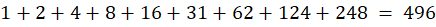 Dzielniki 496 mniejsze od 496 to: 1, 2, 4, 8, 16, 31, 62, 124, 248. Ich suma: