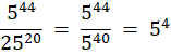 Zapisz iloraz obu liczb. Zapisz obie potęgi jako potęgi liczby 5. Skorzystaj z działań na potęgach i odejmij odpowiednio wykładniki.