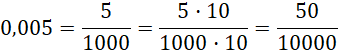 Zamień ułamek dziesiętny na ułamek zwykły o liczniku 50, do tego celu najpierw zamień ułamek dziesiętny na zwykły i rozszerz otrzymany ułamek przez 10, żeby w liczniku było 50. Po zamianie ułamka możesz porównać, go z ułamkiem z gwiazdką.Pamiętaj, że ułamki o wspólnych mianownikach są takie same, tylko wtedy, gdy mają takie same liczniki. Zamieniając ułamki dziesiętne na zwykłe, należy liczbę przed przecinkiem zapisać jako całości, a liczbę po przecinku jako licznik. W mianowniku należy wpisać liczbę, która ma na początku 1 i tyle zer, ile ułamek dziesiętny ma miejsc po przecinku.