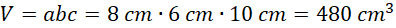 2 cm x 2 cm. Następnie znajdź długości trzech różnych boków i oblicz objętość ze wzoru V = abc.