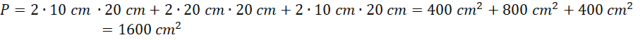 Wiedząc, że długość arkusza potrzebna do zapakowania pudełka o wymiarach podanych na rysunku była równa 80 cm i pole powierzchni tego arkusza było dwa razy większe od pola powierzchni pudełka, oblicz szerokość arkusza papieru.