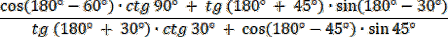 W pierwszym kroku skorzystaj ze wzorów redukcyjnych, aby zapisać funkcje trygonometryczne dla kąta α, znajdującego się w I ćwiartce układu współrzędnych, a następnie podstaw wartości liczbowe i wykonaj operacje matematyczne, w celu obliczenia wartości wyrażenia.