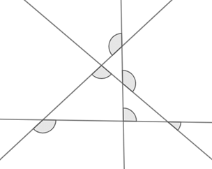 W każdym zaznaczonym punkcie są po dwie pary kątów wierzchołkowych – zaznaczony plus przyległy do niego.
