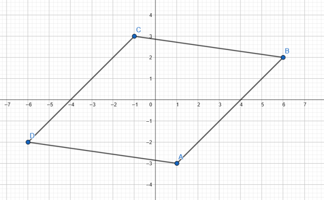 W tym zadaniu musisz udowodnić, że czworokąt o podanych wierzchołkach jest rombem. Potem musisz obliczyć pole tego rombu.