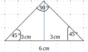 Wysokość opuszczona na przeciwprostokątną dzieli trójkąt na dwie równe części o kątach 45°, 45° i 90°, a więc trójkąt równoramienny. Połowa długości podstawy jest równa wysokości tego trójkąta, czyli 3 cm.
