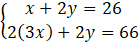 Z rysunku możemy zauważyć, że równoległobok będzie miał obwód równy: 2(3x)+2(y)=66