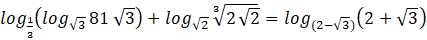 Najpierw działaj na lewej stronie naszego równania upraszczając znajdujące się tam logarytmy. Następnie, gdy odczytasz ich wartości skorzystaj z definicji logarytmu i ponownie uprość próbując dojść do tożsamości, czyli gdy lewa strona równania będzie równać się prawej.