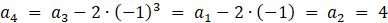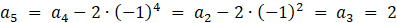 dla wyrazów nieparzystych ciąg przyjmuje wartość 2, natomiast dla parzystych 4. W przypadku ciągu