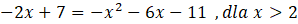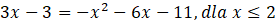 Delta ujemna więc brak rozwiązań, czyli ta część wykresu f nie ma części wspólnych z g.