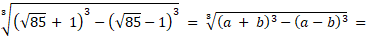 Stosując WSM: (a ± b)3 = a3 ± 3a2b + 3ab2 ± b3 doprowadzamy wyrażenie do najprostszej postaci, a następnie obliczamy jego wartość.