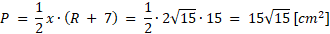 . Następnie skorzystaj z twierdzenia Pitagorasa w trójkącie CAF i wyznacz wartość R. Następnie oblicz wartość x i pole trójkąta.