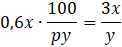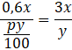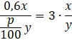 60% licznika do p% mianownika musi dawać 3 razy większy wynik niż licznik do ułamka. Musisz rozwiązać równanie.