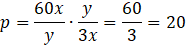 W tym zadaniu musisz stworzyć równanie, korzystając z tego, że 60% licznika i p% mianownika ma stanowić 3 razy większy ułamek niż początkowy licznik i mianownik.