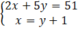 Na początku musisz oznaczyć symbolami liczbę każdego rodzaju monet. Następnie musisz zapisać pierwsze równanie, w którym ich wspólna wartość wynosi 51. Drugim równaniem będzie to, że liczba monet 2-złotowych stanowi liczbę monet 5-złotowych powiększoną o 1.