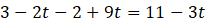 3 – 2(t + 1) + 9t = 11 – 3t