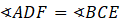 Trójkąty AFD i BCE przystające z cechy bok-kąt-bok