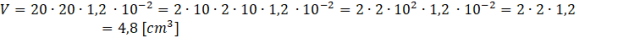 Płasko położona kartka jest modelem graniastosłupa o bardzo małej wysokości. Oblicz objętość tej kwadratowej kartki o boku 20 cm i grubości