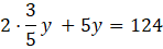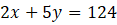 Aby wyznaczyć ilość monet 2 i 5 złotowych, należy ułożyć dwa równania, w którym jednym iloraz x przez y, jest równoważny proporcją posiadanych monet, a w drugim, suma monet jest równa 124. Należy przekształcić te równania do otrzymania wartości x i y.