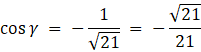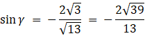 Funkcje trygonometryczne dla kąta γ mają wartości: