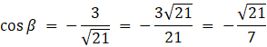 Funkcje trygonometryczne dla kąta β mają wartości: