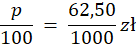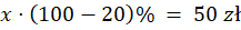 W pierwszym kroku oblicz, ile co najmniej pieniędzy dostał Paweł z lokaty. Następnie zapisz równanie, że całkowite odsetki (x) po odliczeniu podatku mają być równe 50 zł. Rozwiąż je. Tyle co najmniej odsetek wypłacił bank. Oblicz, jaki to procent kwoty wpłaconej (1000 zł). Przy wyższym oprocentowaniu Paweł oczywiście również mógłby kupić mikrofon, a zatem uzyskana liczba jest rozwiązaniem zadania.