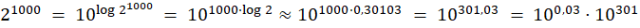Ile cyfr ma zapis dziesiętny liczby podzbiorów zbioru liczącego 1000 elementów?