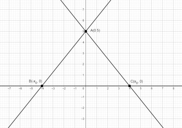Wyznacz zależność między współczynnikami na podstawie podanego warunku dotyczącego ich sumy. Po podstawieniu otrzymanej zależności łatwo zauważyć, że podane proste są symetryczne względem osi OY. Wywnioskuj, że miejsca zerowe tych funkcji są liczbami przeciwnymi. Wyznacz współrzędne wierzchołków trójkąta. Wykorzystaj je do stworzenia wzoru na pole trójkąta. Przyrównaj powstały wzór do 50 i wylicz miejsce zerowe funkcji. Pamiętaj, że miejsce zerowe to argument, dla którego zachodzi