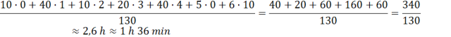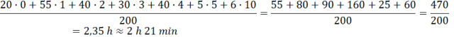 | Liczba godzin | 0 | 1 | 2 | 3 | 4 | 5 | 6 |