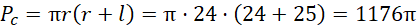 Odp. Pole powierzchni całkowitej tego stożka wynosi 1176π cm2.