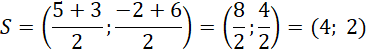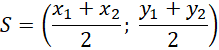 Okrąg opisany na trójkącie prostokątnym ma środek w połowie przeciwprostokątnej. Wyznacz jego współrzędne, za pomocą wzoru:
