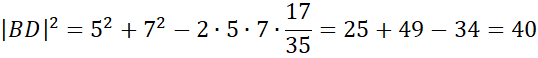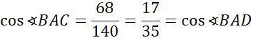 i na tej podstawie oblicz cosinus kąta BAC, a następnie długość środkowej BD.