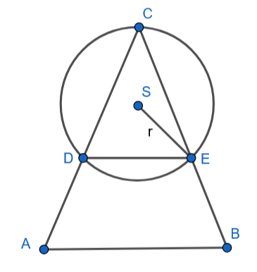 Udowodnij, że odcinki i są równoległe, jeśli dany jest trójkąt o bokach i . Na boku tego trójkąta obrano punkt , a na boku – punkt tak, że i oraz promień okręgu opisanego na trójkącie jest równy .