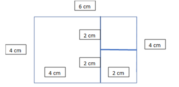 Prostokąt o bokach 6 cm i 4 cm podziel na trzy kwadraty i podaj ich wymiary.