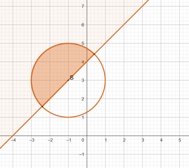 Oblicz pole figury, której wierzchołki opisuje nierówność: (x + 1)2 + (y – 3)2