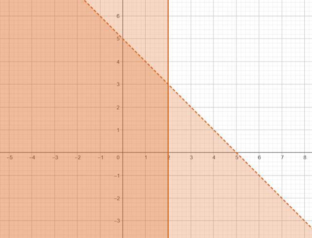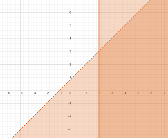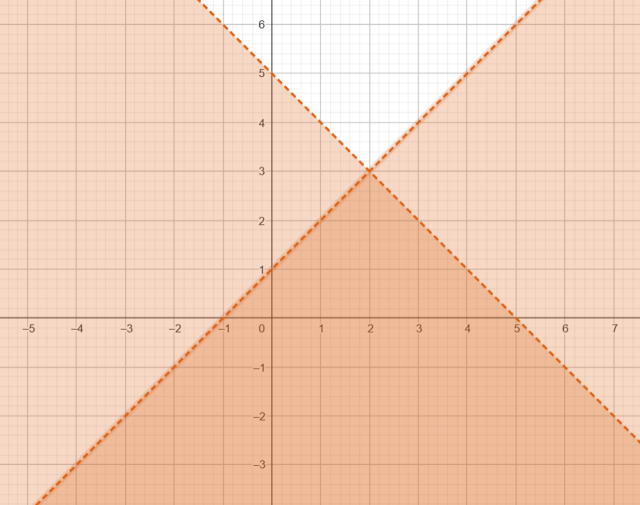 Zaznacz w układzie współrzędnych zbiór punktów będący rozwiązaniem nierówności: y – |x – 2| < 3.