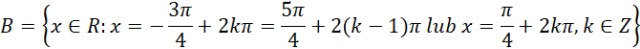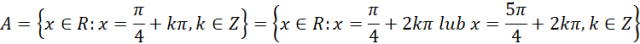 Najpierw przekształć zapis w zbiorach A i B, a następnie zauważ, że zapis w zbiorze A różni się od zapisu w zbiorze B o jeden element k. Nie ma to jednak znaczenia, ponieważ liczba k jest dowolną liczbą całkowitą, więc jesteśmy w stanie uzyskać te same elementy w obu zbiorach.