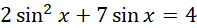 W tym zadaniu musisz rozwiązać równanie 2sin2x + 7 sin x = 4.
