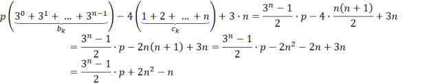 Wyznacz wzór na sumę n-początkowych wyrazów tego ciągu, korzystając z obliczonych w podpunkcie a) kolejnych wyrazach oraz wzoru ogólnego. Następnie pogrupuj odpowiednie wyrazy oraz zastosuj wzory na sumę wyrazów ciągu geometrycznego oraz arytmetycznego.