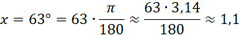 Rozwiąż równanie trygonometryczne. Następnie skorzystaj z tablic trygonometrycznych, aby określić miarę kąta, a potem zamień wynik w stopnia na radiany według wzoru: