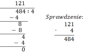 Dzielenie pisemne można opisać schematem: 1) dziel, 2) sprawdź, 3) odejmij, 4) spisz. By sprawdzić poprawność wyniku dzielenia, wykorzystaj działanie odwrotne do dzielenia, czyli mnożenie.