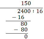 2400 : 16 – 18 · 3 = 150 – 54 = 96