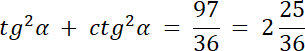tg2α + ctg2α–2 tgα ⋅ ctg α =