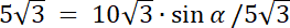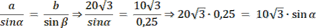 W tym zadaniu opisz okrąg na trójkącie ABC, a następnie skorzystaj z twierdzenia sinusów, aby wyznaczyć sinus α. Zauważ, że α, β, γ mogą należeć od przedziału (0°, 180°), więc przy rozwiązywaniu, skorzystaj ze wzoru redukcyjnego dla funkcji trygonometrycznej sinus: sin α = sin(180°–α), żeby nie wykluczyć drugiego rozwiązania, przy wyznaczaniu wartości kąta α.