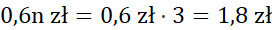 Na początku musisz pomnożyć cenę jednego jajka przez ich ilość. Po zapisaniu wyrażenia w postaci 0,6n, wstaw w miejsce n podaną w podpunkcie wartość. Na koniec dokonaj mnożenia.