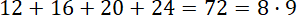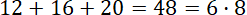 Każde kolejne wyrażenie to suma liczby 12 i kolejnych wielokrotności liczby 4 większych od 12. Sumę można zapisać jako iloczyn liczb naturalnych: jeden z czynników to kolejne liczby parzyste zaczynając od 2, a drugi – kolejne liczby naturalne zaczynając od 6.